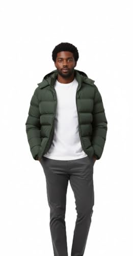 Generic - Men's Quilted Puffer Jacket, Green, Hooded Winter Coat, Casual Outerwear
