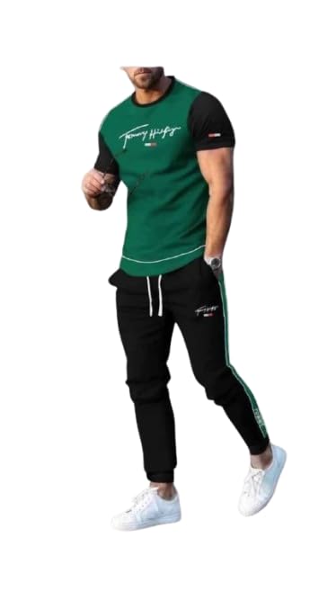 Generic - Mens Pyjama Set of 2 pieces - Green T-shirt and black pants with side stripes - 2XL - NO#: 552