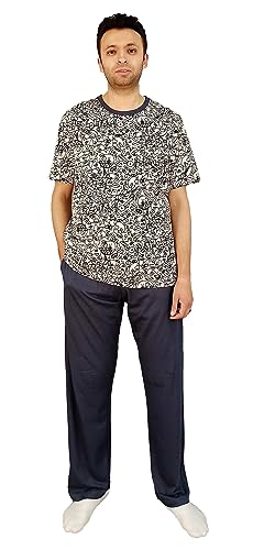 Jet (JET ) - Mens Summer Printed Short Sleeve Round Neck Long Pants Pajama - Beige