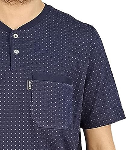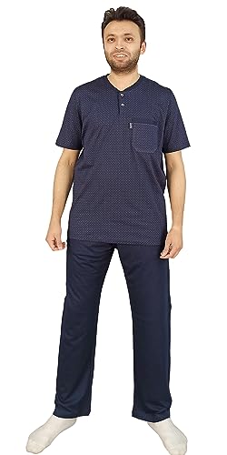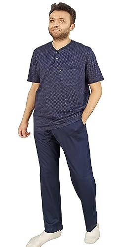 Jet (JET ) - Mens Summer Printed Short Sleeve Round Neck Long Pants Pajama Set - Olive (3XL)