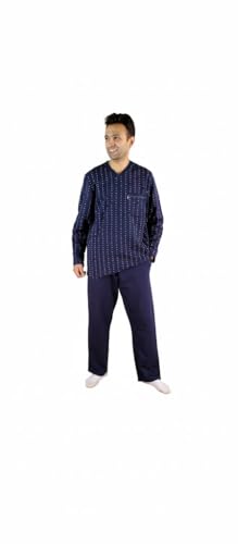 Jet (JET ) - Mens Winter Long Sleeve Seven Neck Printed Solid Long Pants Pajama - Navy