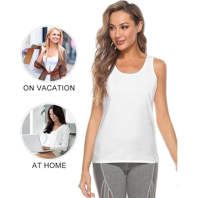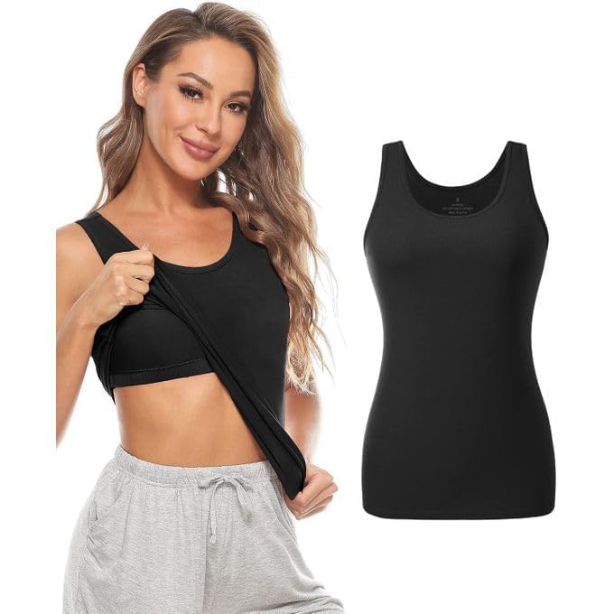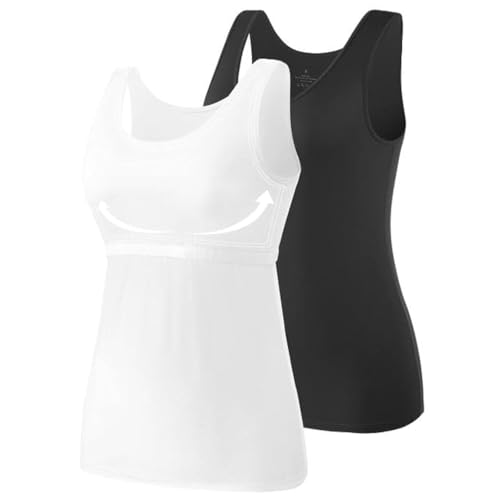 Mesery - Mesery Set Of (2) Tank Tops For Women Built In Bra Shelf Bra Tanks Layering Undershirts