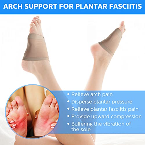 - Quality material: these arch support sleeves are made of quality spandex fabric and silicone material, soft and elastic, safe and skin-friendly, breathable and sturdy, so they can keep your feet in a dry condition even your feet are sweaty