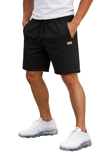 Meza - MEZA Men's Summer Milton Cotton Polyester Zip Pockets Drawstring Elastic Sport Summer Running Workout Shorts