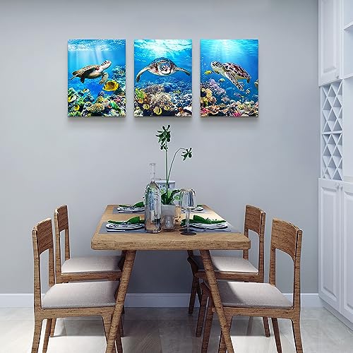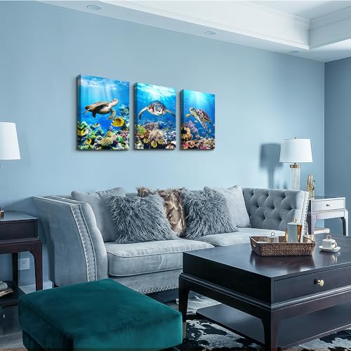 MHARTK66 - MHARTK66 Canvas Wall Art For Living Room Modern Wall Decor For Bedroom Sea Turtle Wall Paintings Ocean Underwater World Pictures Office Wall Decorations Ready To Hang Home Decor 12" X 16" 3 Panels