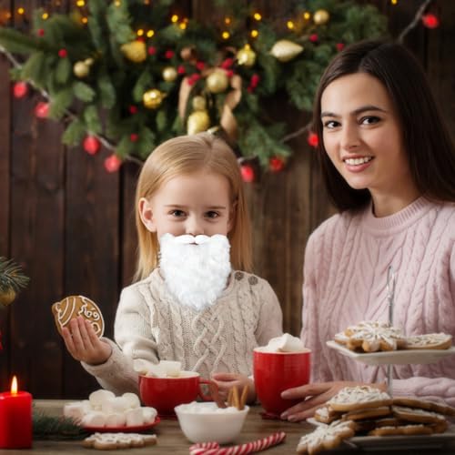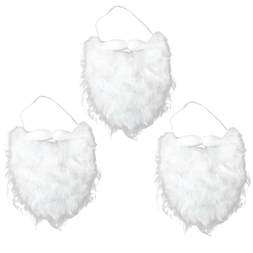 Miaija - 3Pieces Santa's Beards White Funny Beard Fake Whisker with Adjustable Elastic Rope Hair Costume Accessories for Christmas Party Cosplay Supplies