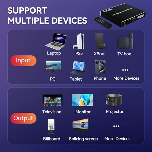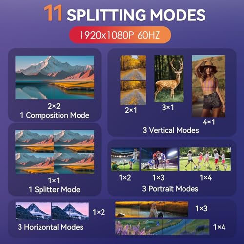 - √【Plug and Play】The video wall controller supports a variety of stitching, plug and play, easy to operate. Support for splicing 2X1/3X1/4X1/1X2/1X3/1X4/2X2.