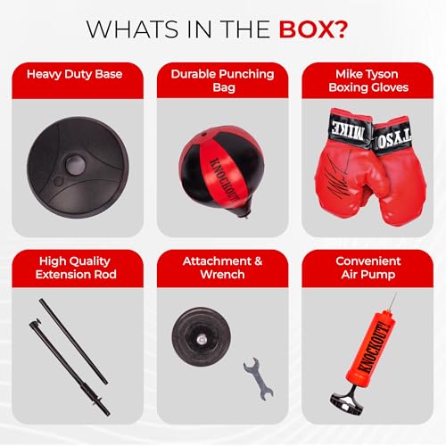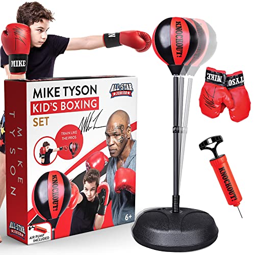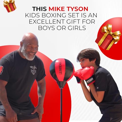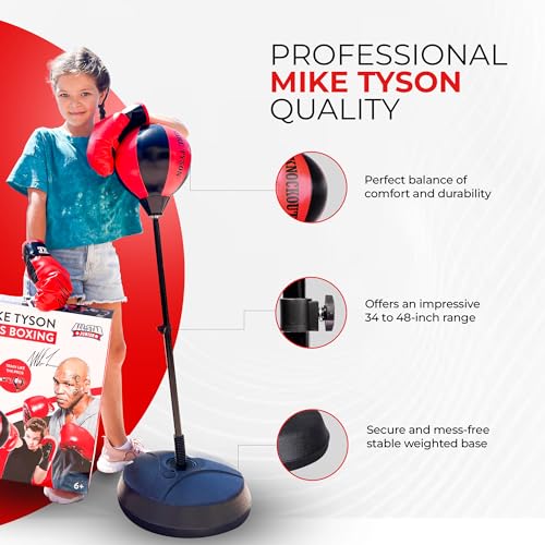 World Tech Toys - كيس ملاكمة للأطفال، مجموعة أدوات ملاكمة مايك تايسون تشمل قفازات ملاكمة وكيس ملاكمة مع حامل