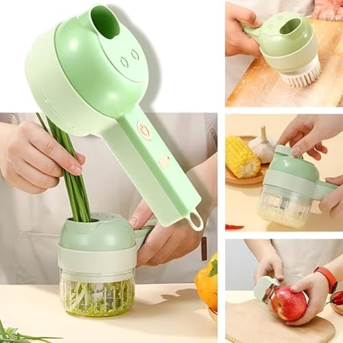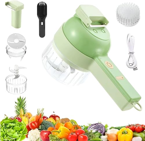 - El juego de cortadores de verduras eléctricos de mano tiene una función de pelado eléctrico. Cepillo eléctrico para platos con cerdas rígidas, estante rápido y fácil de limpiar. Pele la fruta con el juego de cortadores de verduras eléctricos de mano 4 en 1, picador de verduras 4 en 1. El cortador de verduras de mano cortará las verduras en rodajas o hará que los ingredientes sean más tiernos. Una máquina tiene múltiples funciones, que pueden resolver tus problemas de rebanado, picado y pelado de