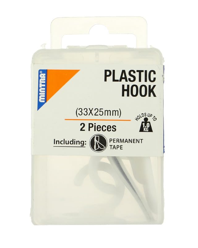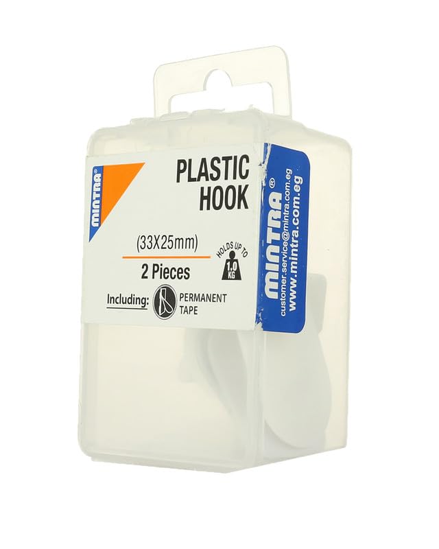 Mintra - مينترا شماعة خطافية لاصقة من قطعتين 94055 - ابيض، بلاستيك
