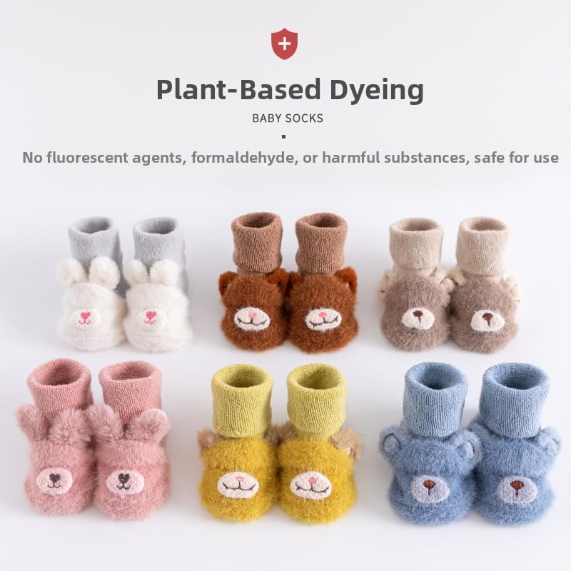 Mira Kids - شرابات بيبي قطن شتوي للجنسين من ميرا كيدز | شراب حيوانات ناعم مضاد للانزلاق | مقاسات S/M للسن 0-3 سنوات – الوان دافية