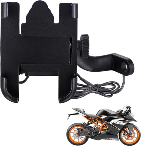 Generic - حامل معدن ، قابل للتعديل والدوران ومثبت قوى للهاتف ضد السقوط حتى فى الطرق الوعرة ، للموتوسيكلات والدراجات والسيارات الجبلية ومناسب لجميع الهواتف (عمود مرايا - شاحن USB - اسود ) - من نسمه ستور