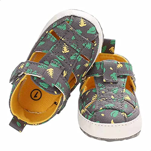 MIX & MAX - Mix & Max Patterned Canvas Cut-out Velcro-Closure Shoes for Boys - Grey, 9 - 12 Months