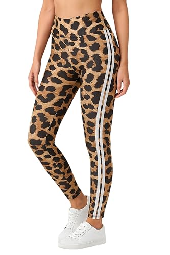 Meza - MIZA Women's Leopard Print Leggings with 2 Side Stripes White Sports Gym Leggings - Leggings Tiger for Girls and Women