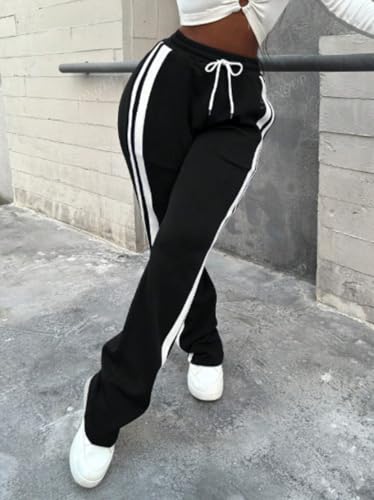 Meza - MIZAYEH Women's High Waist Sweatpants Milton Cotton Double Side Stripe Workout Casual Walking Pants for Women Girls