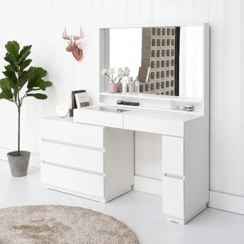 Generic - Modern Vanity Dressing Table with Mirror, 5 Storage Drawers (White)