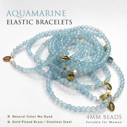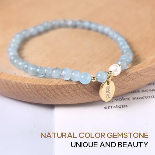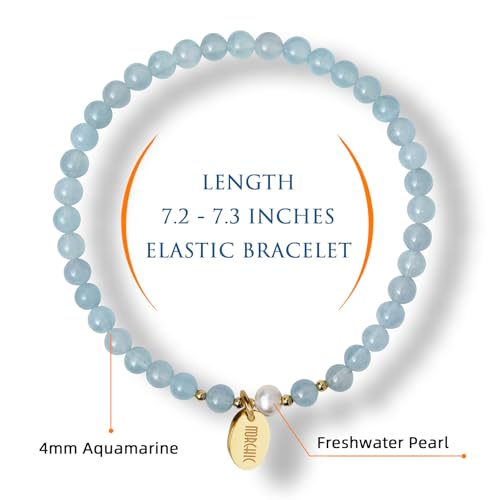 Morchic - Morchic 4mm Natural Aquamarine Gemstone Beads Stretch Bracelet for Women, With Freshwater Pearls, Energy Gem Birthday Gift for Her 7.2”