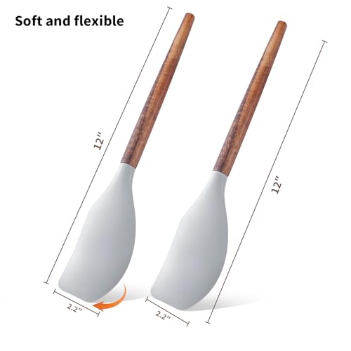 MornHalo - 2PCS Wooden Spoons For Cooking-14 Inch Cooking Spoons Smooth Finish Comfortable Grip Acacia Wood Spoons Cooking Non-Stick Cooking Kitchen Utensil Set Soft Spatula Set