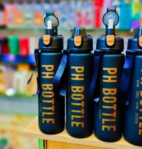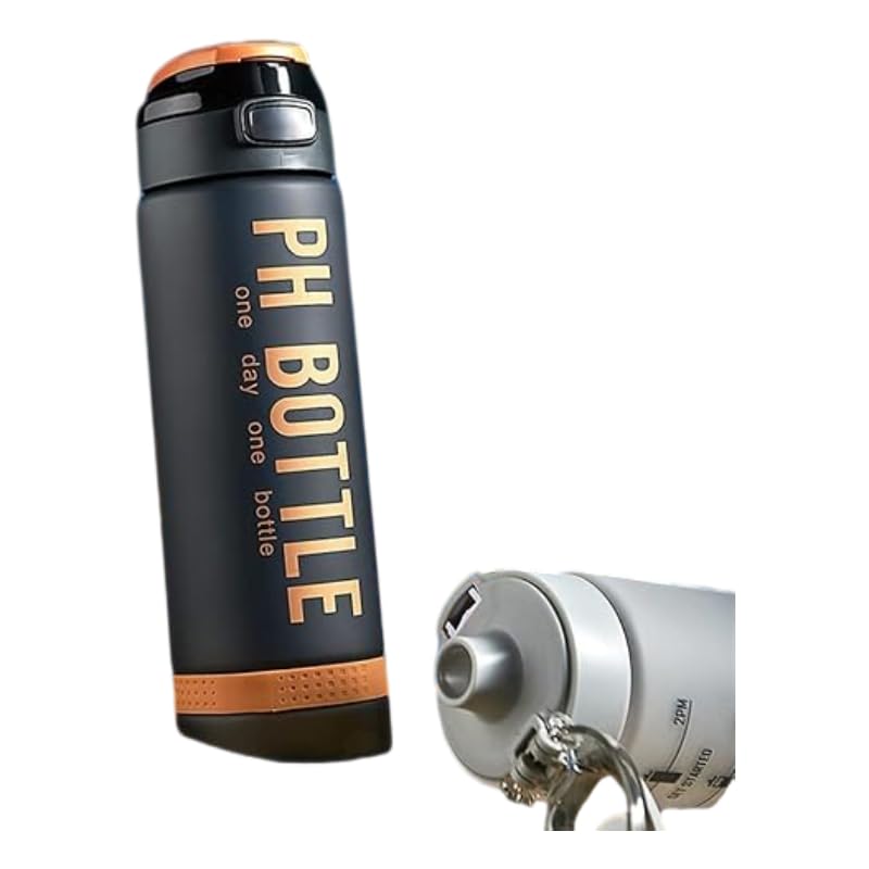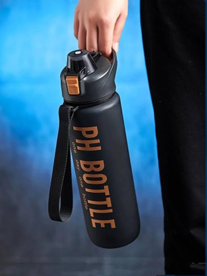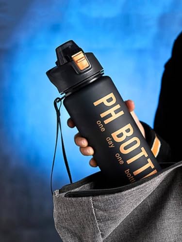 • شعار ملهم وقياس الوقت لجسم زجاجة المياه الرياضية سعة 1000 مل مطبوع بشعار ملهم فريد ومقياس واضح للوقت والسعة يذكرك بشرب الماء في الوقت المناسب للحفاظ على رطوبتك والحفاظ على مزاجك الجيد. يساعد على تتبع المياه اليومية