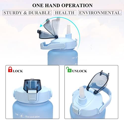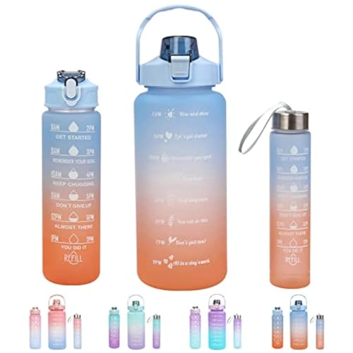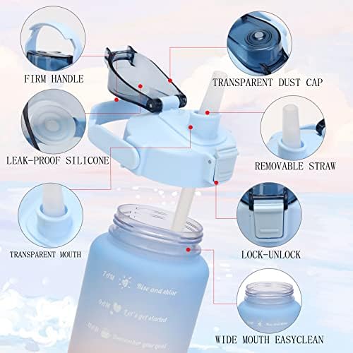 Generic - زجاجة مياه بعبارات تحفيزية مع ماصة 3 قطع، زجاجات شرب كبيرة مانعة للتسرب وخالية من مادة بيسفينول أ للرياضة وصالة الألعاب الرياضية والسفر، 2 لتر/1.6 لتر/ 946 مل/473 مل (أزرق متدرج)
