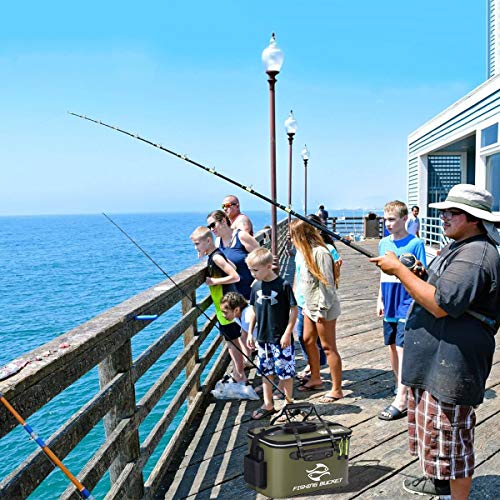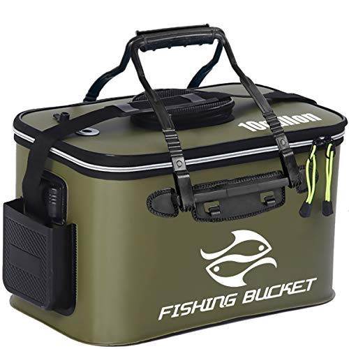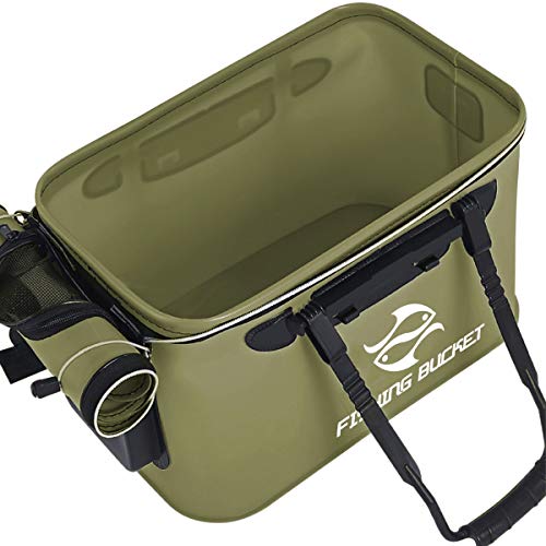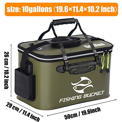MR LION - MR LION Foldable Fishing Bucket - Live Fish Container, Multi-Functional EVA Bag for Lures, Bait, and Catch (10GAL/ArmyGreen)