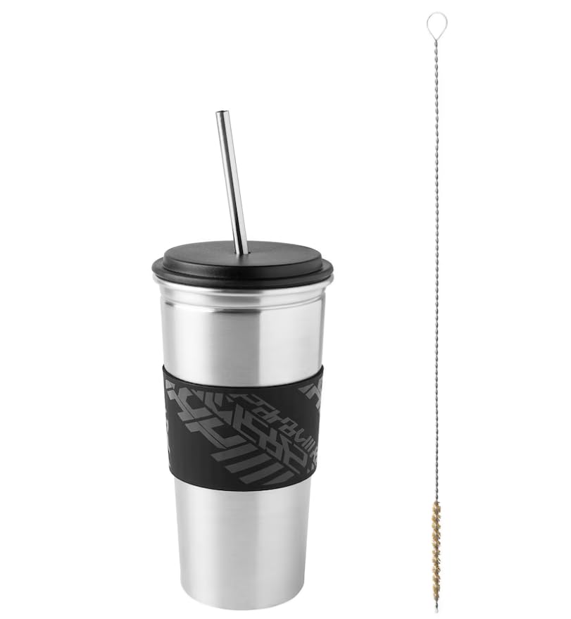 • CONSTRUCTION: Premium stainless steel tumbler with black silicone grip sleeve and secure lid featuring built-in straw for convenient sipping