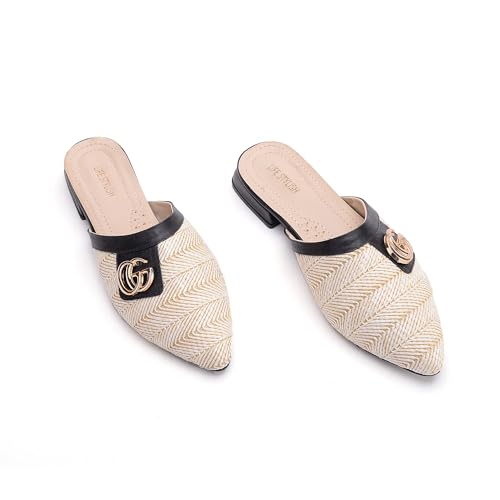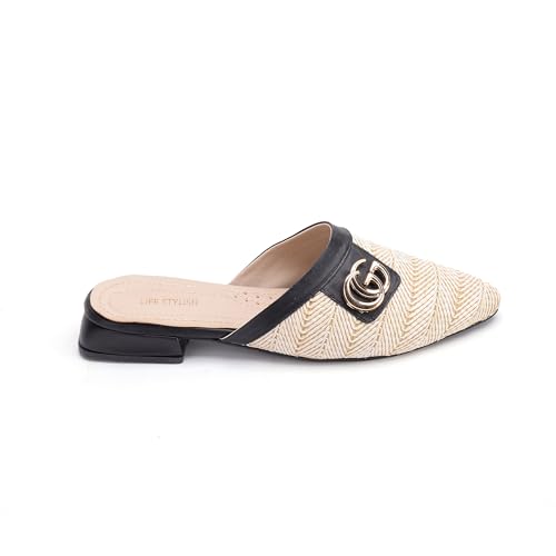 Life Stylish - Mules Flat Burlap And Leather SB-16
