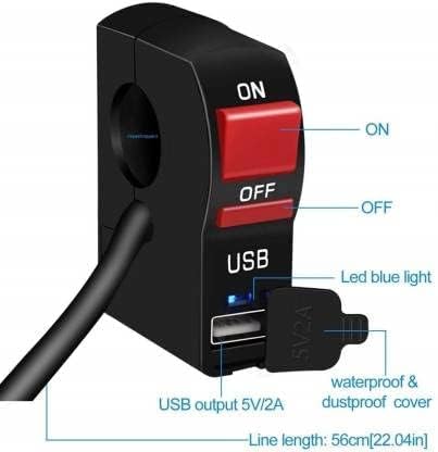 - This product combines a USB mobile phone charger with a handle switch for motorcycles, providing a convenient solution for charging electronic devices while riding.