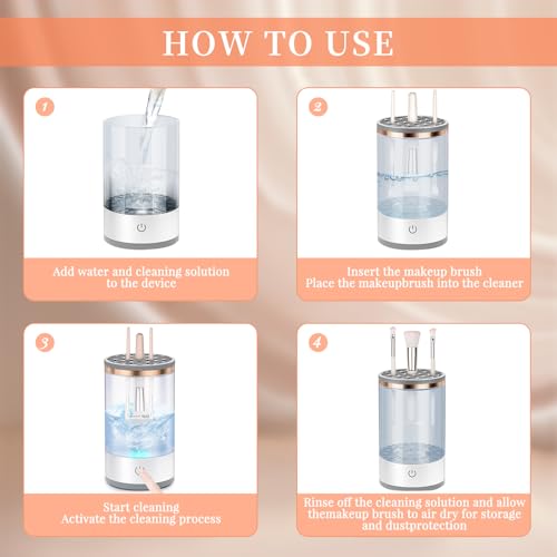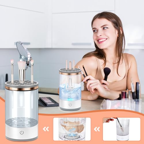 MOODTALK - جهاز تنظيف فرش مكياج كهربائي اوتوماتيك متعدد الوظائف وموفر للطاقة جهاز تنظيف فرش المكياج سهل الاستخدام وفعال، لون أبيض