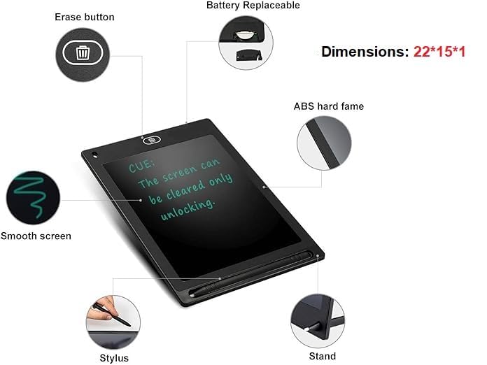 - A large writing surface with an 8.5-inch LCD screen gives you even more room to draw or write to show your imagination or educational content.
