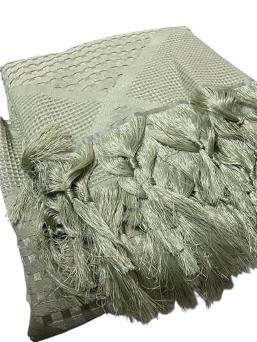 Generic - Multi Pattern Woven Design Bedspread with Tassels, Olive Green, Geometric Pattern