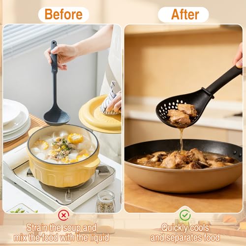 - Compact,Lightweight & Easy Storage:This silicone slotted spoon is small,lightweight,and sturdy,with an ergonomic handle and hanging hole design for easy gripping,storage,and hanging,keeping your kitchen tidy and organized,with utensils within easy reach,while ensuring comfort and ease of use while cooking