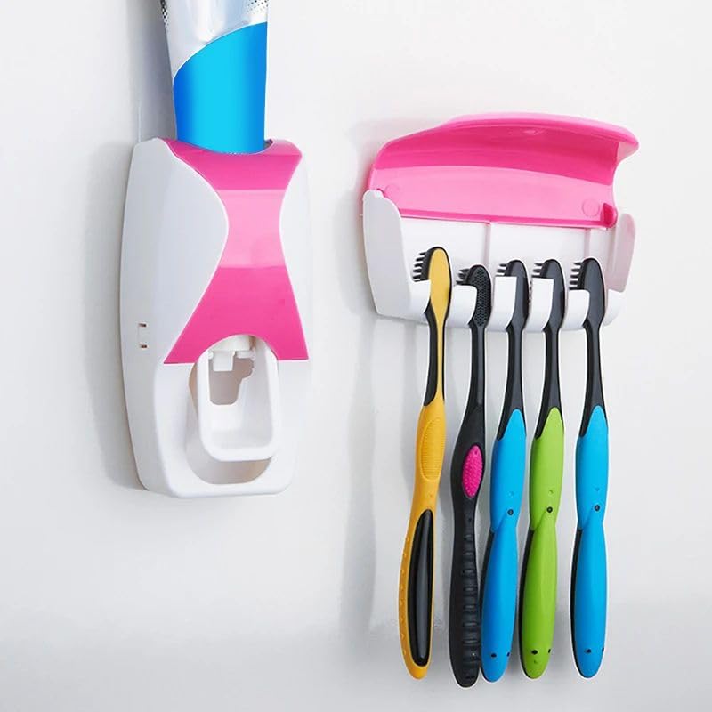 Generic - حامل فرشاة أسنان متعدد الوظائف وموزع معجون أسنان أوتوماتيكي يثبت على الحائط ومنظم تخزين للحمام