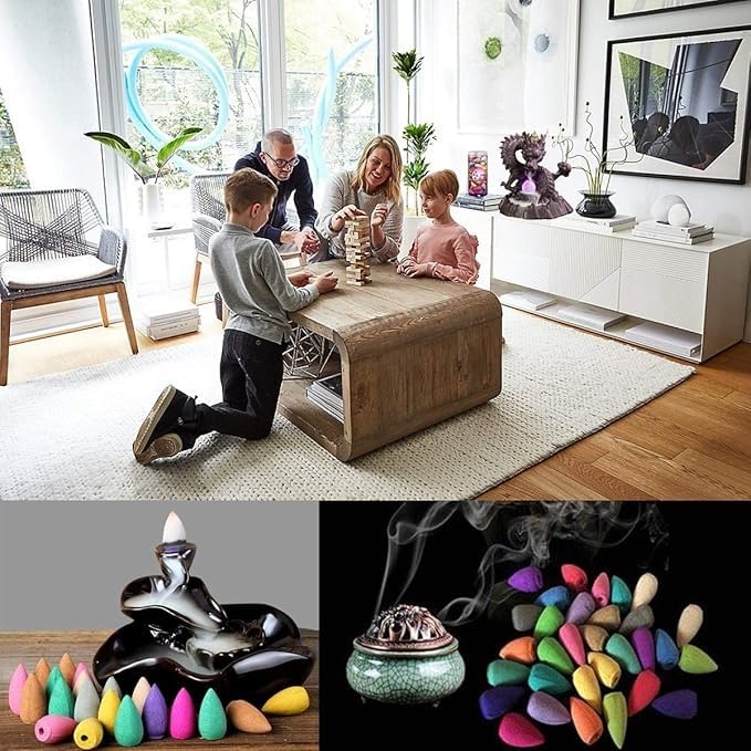 - مصنوع من قطع بخور طبيعية بانسياب دخان عكسي بشكل شلال.