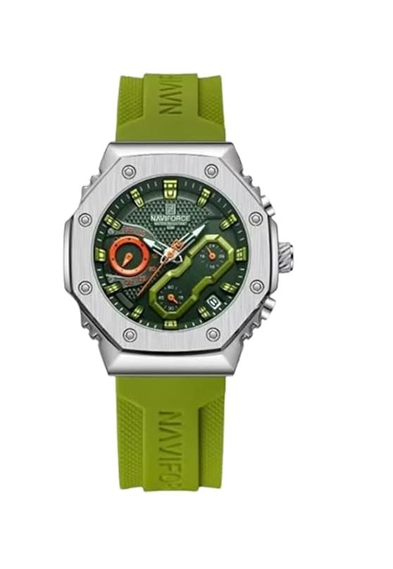 Naviforce - Naviforce Analog Quartz Limited Edition Watch For Mens- Chronograph, Leather Strap, Luminous Hands, Water Resistant 50M Silver- Green