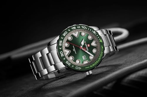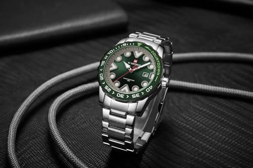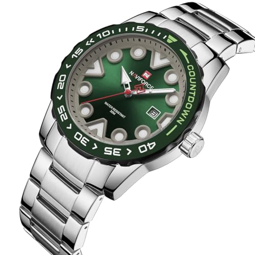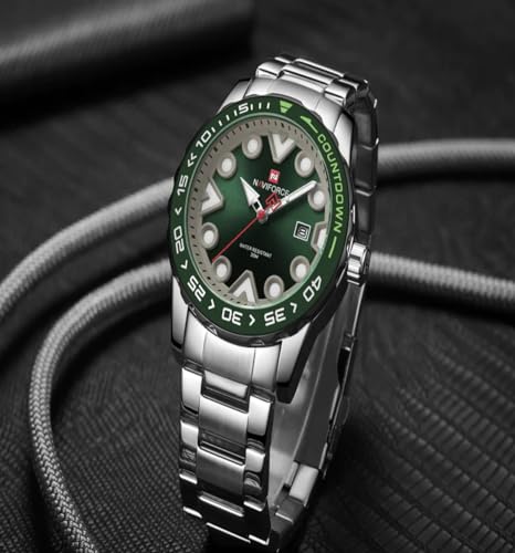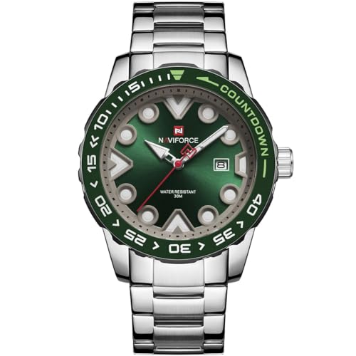 Naviforce - نافي فورس ساعة للرجال 9178 اس جي ان، تناظري، بمينا أخضر، بسوار فضة