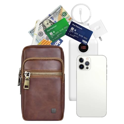 Next store - Next Store Premium Leather Waist Bag for Men Large Capacity – Multi-Layer Mobile Phone Pouch with Magnetic Closure and Durable Metal Buckle, Perfect for Versatile Uses, Superior Protection (Brown)