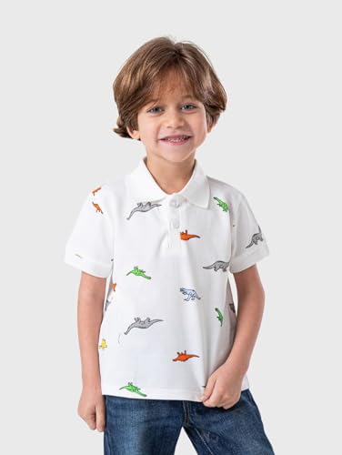 NIÑOS - تيشرت بولو قطن بطبعة ديناصور للاولاد بعمر 6 سنوات من نينوس - ابيض