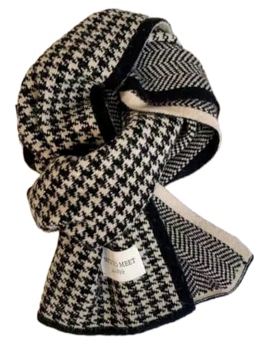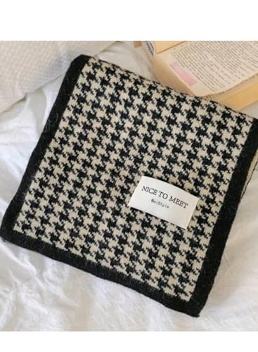 Generic - NICATO MEEK Houndstooth Check Pattern Square Knit Scarf, Camel, Polyester, Rectangular Model, Casual Style, Spring Fall Winter, Women's