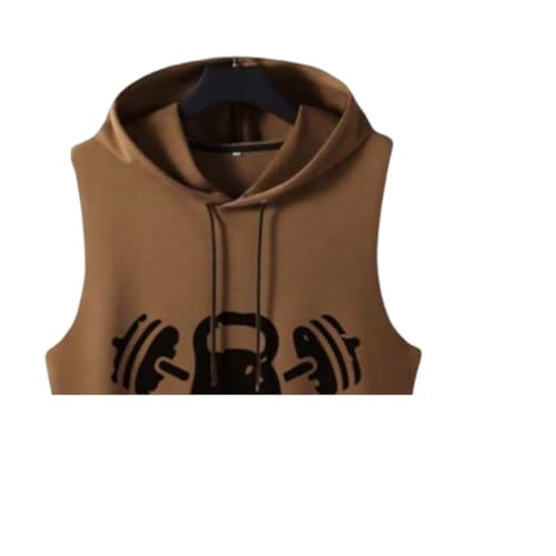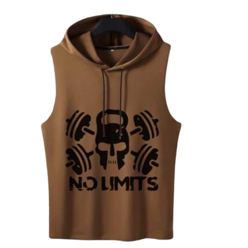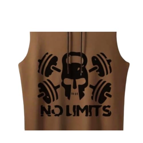 عام - تيشرت رياضي بدون أكمام مع طباعة NO LIMITS، بني، مقاس XXXL، للجيم والشاطئ
