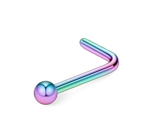 BIJOUX BEAUTIQUE - Nose Ball L-Shape Stud Piercing Jewelry - Rainbow