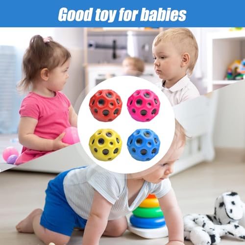 - 【كرة نطاطة عالية】تتميز هذه الكرات النطاطة الملونة بمرونة قوية للغاية، مصحوبة بصوت البوب. عندما ترميها على الأرض أو أي سطح صلب، يمكنك سماع صوت البوب. لا داعي للقلق بشأن مرونة الكرة الإسفنجية على شكل قمر، لأن كرة الأطفال النطاطة تدوم طويلًا.
