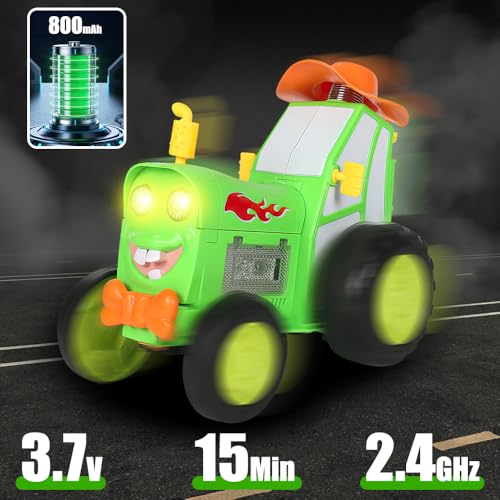 OBEST - OBEST ジャンプ特技車 RC ラジコンカー おもちゃ おもしろい 音楽、ライト 奇抜なダンス 誕生日プレゼント (緑)