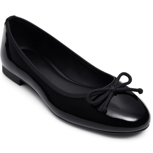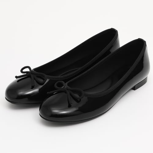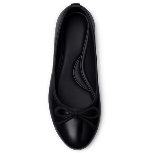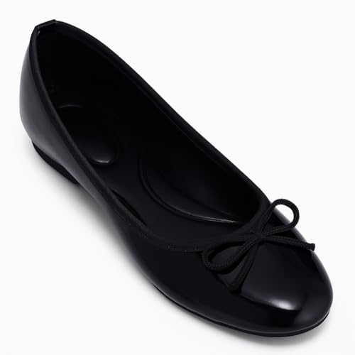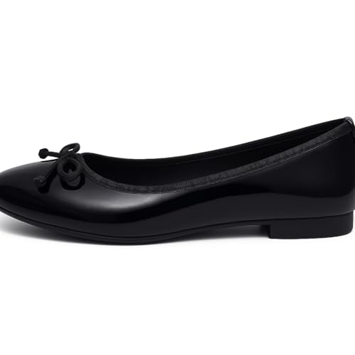 OG - حذاء باليرينا مسطح كلاسيكي بمظهر جلد حاصل على براءة اختراع مزين بفيونكة من او جي