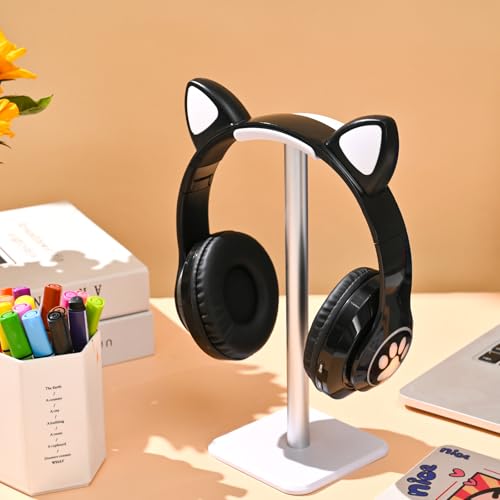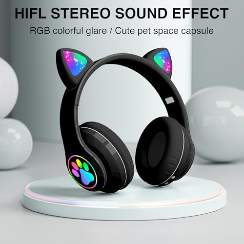 OHAANYY - Wireless Bluetooth Headphones for Children, Foldable Girls Headphones Over Ear, LED Cute Cat Ears, Foldable, Bluetooth 5.0 Headphones for Tablet/Mobile Phone/PC (Black2)
