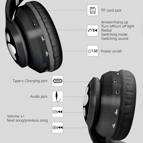 - Cute cat ear design with LED lights: the wireless headphones for children have a special design with super cute cat ears. Bluetooth headphones with red/blue/green LED can flash in rhythm and change colour, let your children dance to the music and bring more fun, joy and happiness to your children and family.