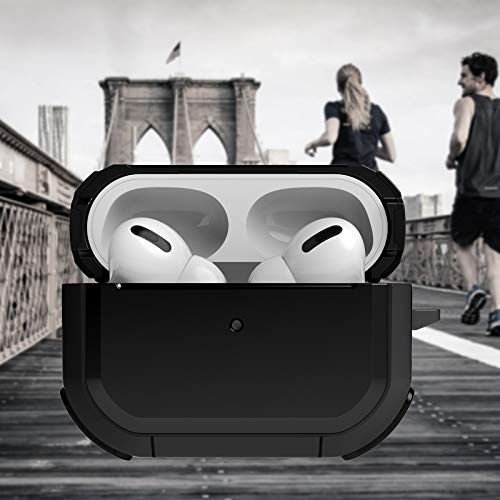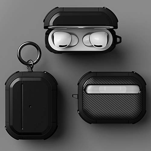 OLEBAND - جراب حماية من اوليباند متوافق مع سماعات ايربودز برو 2 مع سلسلة مفاتيح، غطاء حماية متين من الدرجة العسكرية، متوافق مع جراب ابل ارمور الجديد لايربود برو الجيل الثاني 2022، اسود