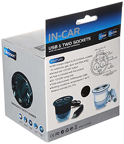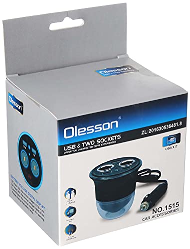 Olesson - محول سيارة يو اس بي بمقبسين من اوليسون No.1515 - اسود