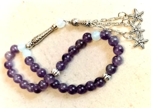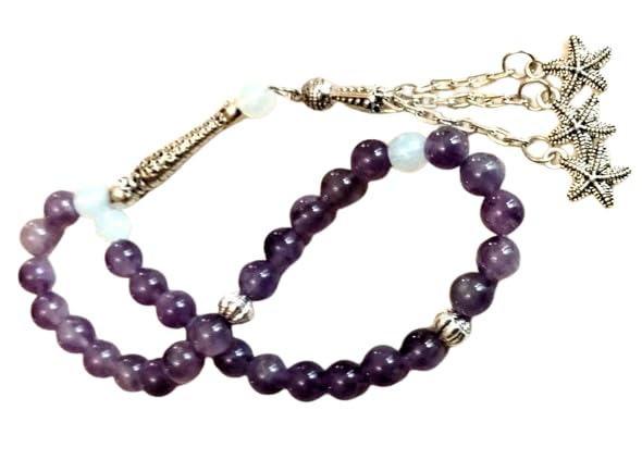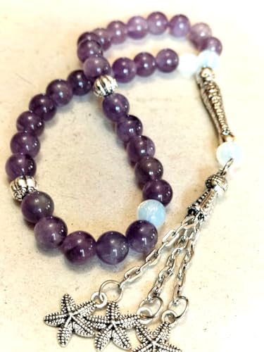 Generic - سبحة راقية جدا بتصميم خاص بنا فقط بأحجار الأماتيست - جمشت الطبيعية مطعمة الأوبال الأبيض الرائع 33 حبة - حجم الحبة 8 مللي باكسسوارات مستوردة بأعلى درجات الجودة للكبار من الجنسين