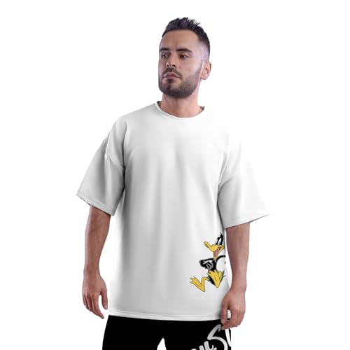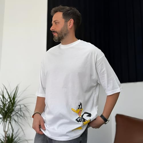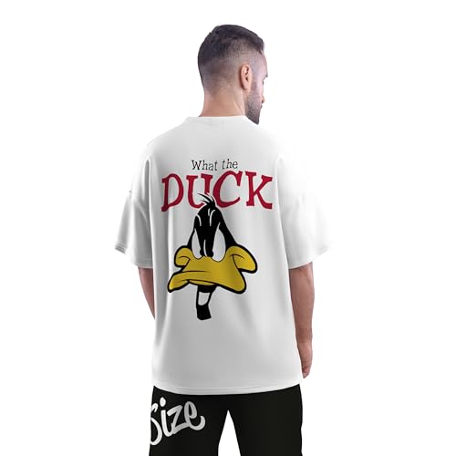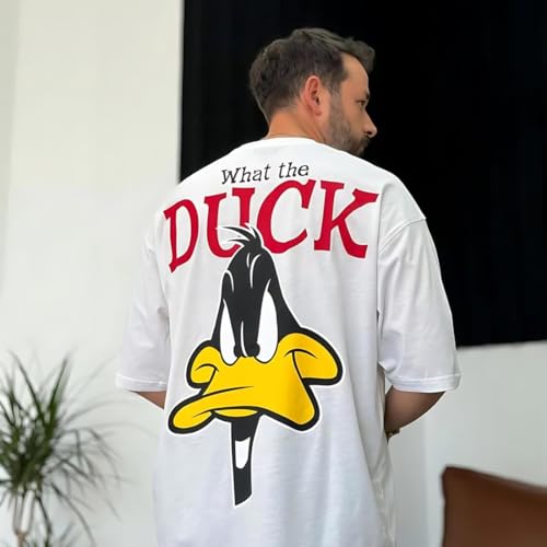 Generic - تي شيرت قطني كبير الحجم للرجال والنساء، مطبوع عليه عبارة What the Duck (ابيض)